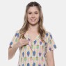 Camisão manga curta com abertura por botão, estampa corrida em tecido meia-malha 100% algodão.