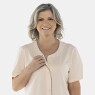 Camisola manga curta com abertura frontal e fechamento em botões em tecido com estampa corrida, confeccionada em tecido meia-malha 100% algodão.