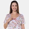 Camisola gestante manga curta com abertura por botões, estampa corrida e lastex, confeccionada em tecido meia-malha 100% algodão.