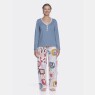Conjunto clássico manga longa, com abertura por botão, em tecido colorido e calça com estampa corrida, confeccionados em tecido meia-malha 100% algodão.