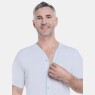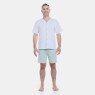 Conjunto clássico manga curta aberta, com fechamento por botões, bordado, em tecido liso e short em tecido colorido, confeccionados em tecido meia-malha 100% algodão.