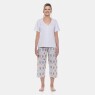 Pijama manga curta em tecido liso aberto com fechamento por botões e corsário com estampa corrida, confeccionados em tecido meia-malha 100% algodão.
