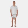 Pijama clássico manga curta aberta, com fechamento por botões, bordado e short, confeccionados em tecido colorido meia-malha 100% algodão.