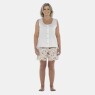 Conjunto pijama regata com abertura frontal e fechamento por botões, viés no decote, e bermuda, confeccionados em tecido meia-malha 100% algodão com estampa corrida.