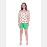 Conjunto regata com estampa corrida e short com tecido colorido, confeccionados em tecido meia-malha 100% algodão.