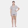 Conjunto manga curta aberta, com fechamento por botões e short com estampa corrida, confeccionados em tecido meia-malha 100% algodão.
