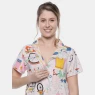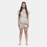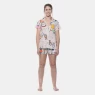 Pijama manga curta aberta, com fechamento por botão, estampa corrida e short com estampa corrida, confeccionados em tecido meia-malha 100% algodão.