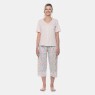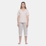 Pijama manga curta em tecido colorido, aberto com fechamento por botões e corsário com estampa corrida, confeccionados em tecido meia-malha 100% algodão.