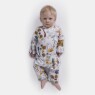 Macacão manga longa com estampa corrida, abertura na gola entre as pernas por tic-tac para facilitar o vestir, confeccionado em tecido meia-malha 100% algodão.