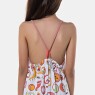 Macaquinho alça, com estampa corrida, confeccionado com tecido meia-malha 100% algodão.