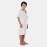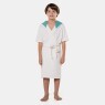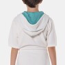 Roupão manga curta com fechamento por transpasse e cinto, capuz em tecido colorido, confeccionado em tecido atoalhado (85% algodão / 15% poliéster).