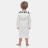 Roupão manga longa com fechamento por transpasse e cinto, capuz com estampa local, confeccionado em tecido atoalhado (85% algodão / 15% poliéster).
