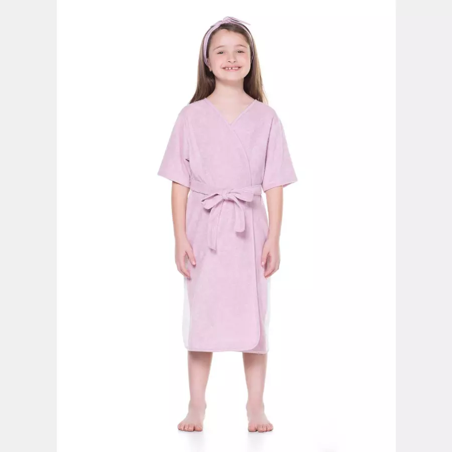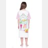 Roupão manga curta com fechamento por transpasse e cinto, em tecido colorido, estampa nas costas, e confeccionado em tecido atoalhado 85% algodão e 15% poliéster.