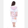 Roupão manga curta com fechamento por transpasse e cinto, estampa local nas costas e capuz com tecido colorido e confeccionado em tecido atoalhado 85% algodão e 15% poliéster.