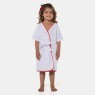 Roupão manga curta com fechamento por transpasse e cinto, estampa local nas costas, confeccionado em tecido atoalhado (85% algodão / 15% poliéster).