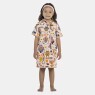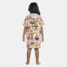 Roupão manga curta com fechamento por botão e capuz, confeccionado em tecido atoalhado com estampa corrida (85% algodão e 15% poliéster).