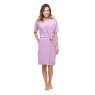 Roupão manga curta com fechamento por transpasse e cinto, plaquinha metálica, confeccionado em tecido colorido atoalhado (85% algodão / 15% poliéster).