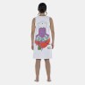 Roupão regata cavado com fechamento frontal em zíper, com estampa local nas costas, confeccionado em tecido atoalhado (85% algodão e 15% poliéster).