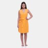 Roupão cavado, com estampa local nas costas e fechamento por cinto, confeccionado em tecido colorido atoalhado (85% algodão / 15% poliéster).