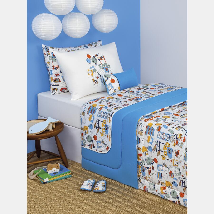 Jogo de lençol tamanho casal, composto por 1 lençol com elástico com tecido colorido liso e 2 fronhas com estampa local, 1 sobre lençol com acabamento em viés e estampa corrida com personagem, confeccionados em tecido meia-malha 100% algodão. As fronhas que compõem o jogo de lençol são expostas na foto sempre à frente das fronhas avulsas, também vendidas no site. Não acompanha, outras fronhas avulsas, almofadas e outros acessórios expostos na imagem. Imagem meramente ilustrativa.