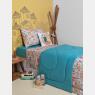 Jogo de lençol tamanho solteiro, composto por 1 lençol com elástico em tecido colorido liso e 1 fronha com estampa corrida, 1 sobre lençol com acabamento em viés e estampa corrida com personagem, confeccionados em tecido meia-malha 100% algodão. Não acompanha, outras fronhas avulsas, almofadas e outros acessórios expostos na imagem. Imagem meramente ilustrativa.