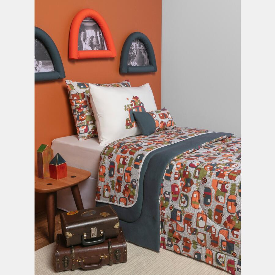 Jogo de lençol tamanho solteiro, composto por 1 lençol com elástico em tecido colorido liso e 1 fronha com estampa local, 1 sobre lençol com acabamento em viés e estampa corrida com personagem, confeccionados em tecido meia-malha 100% algodão. As fronhas que compõem o jogo de lençol são expostas na foto sempre à frente das fronhas avulsas, também vendidas no site. Não acompanha, outras fronhas avulsas, almofadas e outros acessórios expostos na imagem. Imagem meramente ilustrativa.