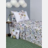 Lençol tamanho solteiro com elástico em tecido com estampa corrida com personagem e 2 fronhas, 1 com estampa local e 1 com estampa corrida, em tecido meia-malha 100% algodão. Não acompanha, outras fronhas avulsas, almofadas e outros acessórios expostos na imagem. Imagem meramente ilustrativa.