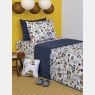 Lençol tamanho solteiro, com elástico com estampa corrida com personagem e 2 fronhas, 1 com estampa corrida e 1 em tecido colorido liso, confeccionados em meia-malha 100% algodão. Não acompanha, outras fronhas avulsas, almofadas e outros acessórios expostos na imagem. Imagem meramente ilustrativa.