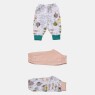 Kit mijão longo com punho, composto por 3 unidades, sendo duas com estampa corrida e uma em tecido colorido liso, confeccionados em tecido meia-malha 100% algodão. Não acompanha pagão.
