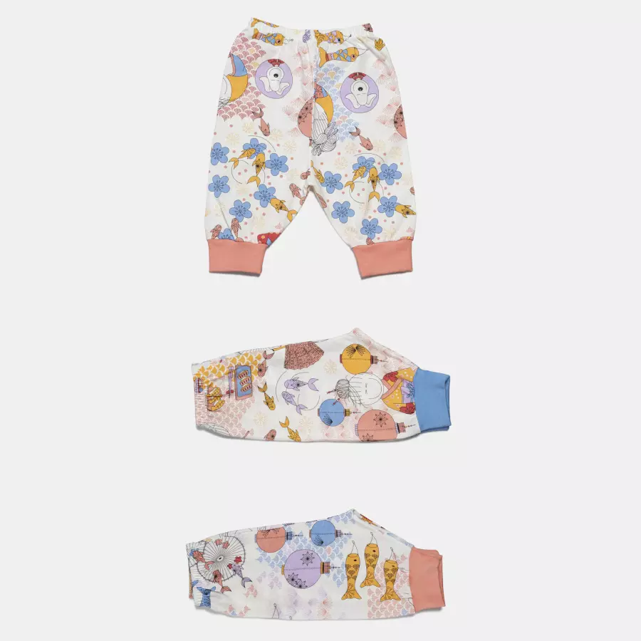 Kit mijão longo com punho, composto por 3 unidades com estampa corrida, confeccionados em tecido meia-malha 100% algodão. Não acompanha pagão.