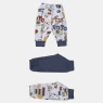 Kit mijão longo com punho, composto por 3 unidades, sendo duas com estampa corrida e uma em tecido colorido liso, confeccionados em tecido meia-malha 100% algodão. Não acompanha pagão.