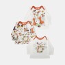 Kit pagão manga longa composto por 3 unidades, sendo duas com estampa local e uma com estampa corrida, confeccionados em tecido meia-malha 100% algodão. Não acompanha calça/mijão longo.