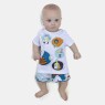 Kit pagão manga curta composto por 3 unidades, sendo duas com estampa local e uma com estampa corrida, com abertura entrepernas e fechamento em botões tic-tac, confeccionados em tecido meia-malha 100% algodão.