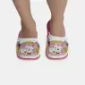 Pantufa fechada com estampa local, confeccionada em tecido meia-malha 100% algodão, enchimento 100% poliéster e sola em EVA.