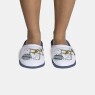 Pantufa fechada com estampa local, confeccionada em tecido meia-malha 100% algodão, enchimento 100% poliéster e sola em EVA.