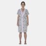 Robe manga curta com fechamento por transpasse e cinto, com detalhe em viés em tecido atoalhado, confeccionado em tecido meia-malha 100% algodão com estampa corrida.