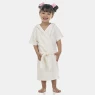 Roupão manga curta com estampa local na parte posterior, fechamento por transpasse e cinto e estampa corrida no capuz, confeccionado em tecido atoalhado (85% algodão e 15% poliéster).