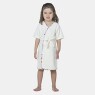 Roupão manga curta com fechamento por transpasse e cinto, detalhe em viés e estampa local na parte posterior, confeccionado em tecido atoalhado (85% algodão / 15% poliéster).
