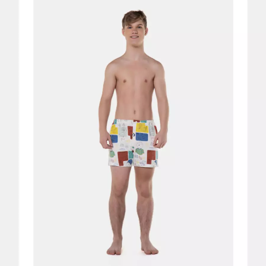 Short com estampa corrida e botões, confeccionado em tecido meia-malha 100% algodão.