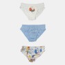 Kit composto por 3 unidades de cuecas, sendo uma com estampa corrida, uma com estampa local e uma em tecido colorido, elástico nas bordas, confeccionadas em tecido meia-malha 100% algodão.