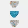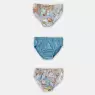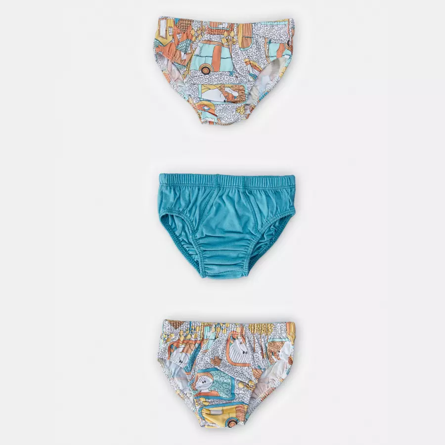 Kit composto por 3 unidades de cuecas, sendo duas com estampa corrida e uma em tecido colorido liso, elástico nas bordas, confeccionadas em tecido meia-malha 100% algodão.